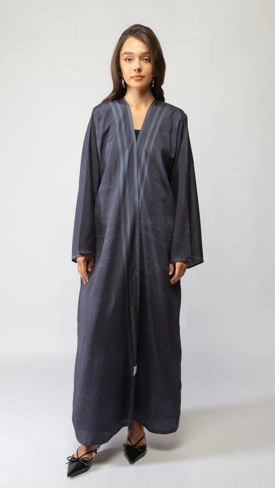 A deep charcoal-toned piece featuring delicate tonal floral illustrations, offering subtle elegance with a whisper of nature’s charm.
